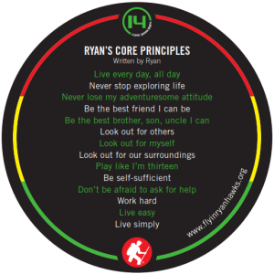 “Extend the impact and spirit of Ryan Hawks to make the world a better place one person, one day, one event, one core value, one decision at a time.”