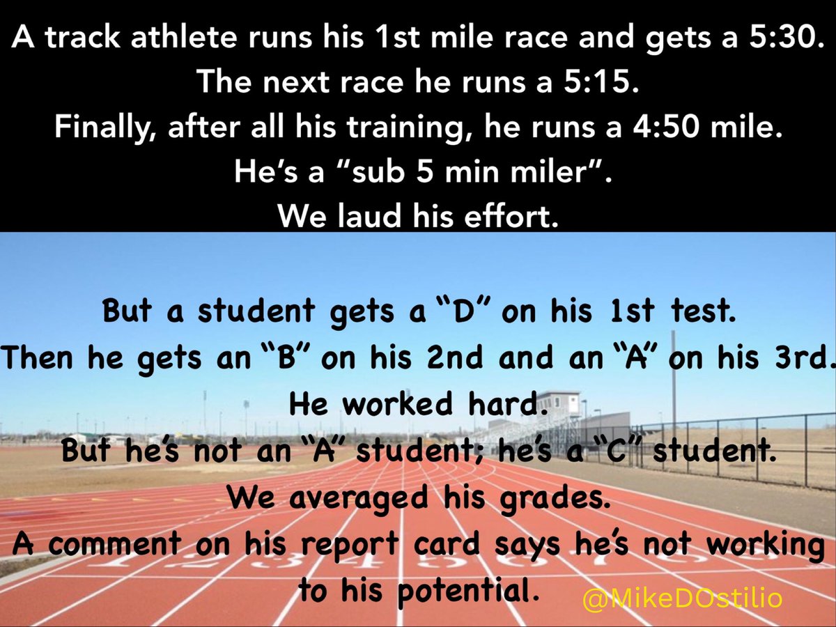 During a recent discussion about assessment, homework, and late work, I am still surprised by the definitive lines that are being drawn around assessing students. The above image and text, to me, strikes at the heart of how we should view assessment. Are we, as educators, seeking to map student achievement? Or student growth?